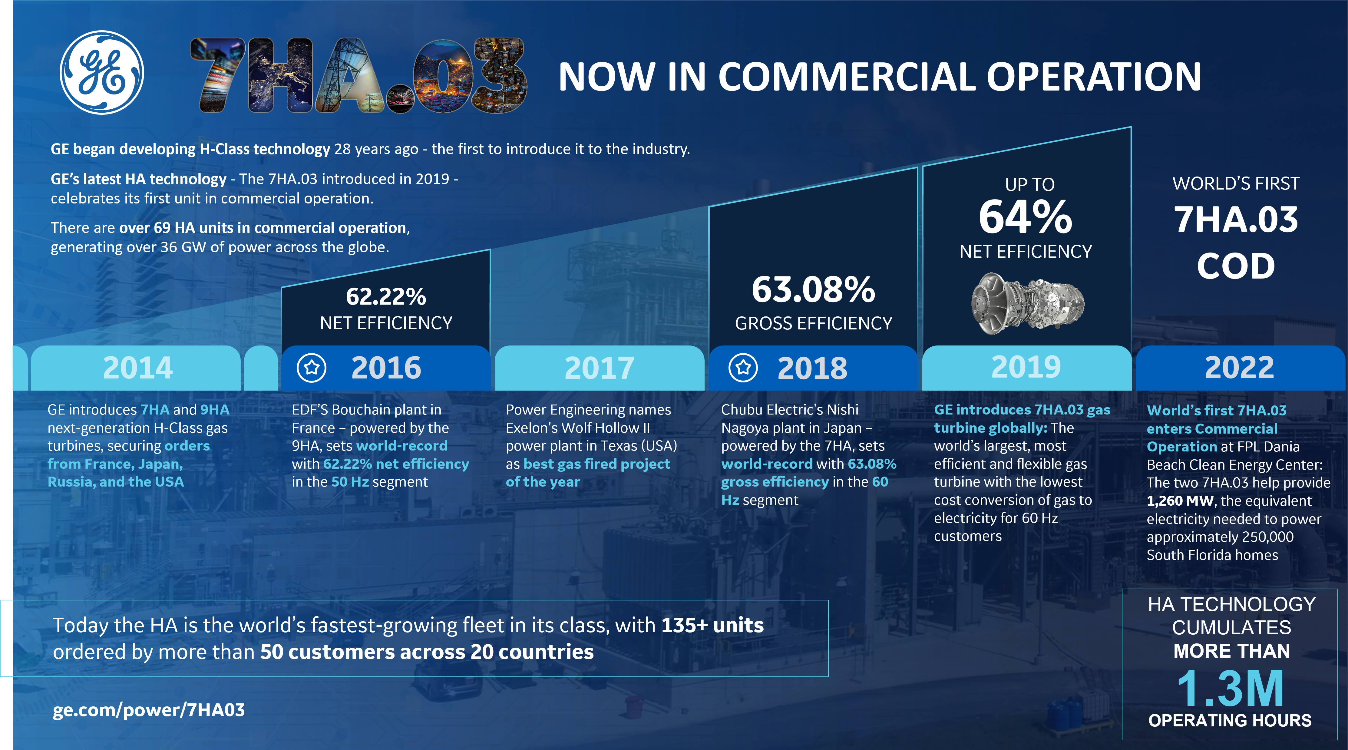 - GE’s 7HA.03 gas turbine is the largest, most efficient and flexible 60 Hertz gas turbine currently in operation globally